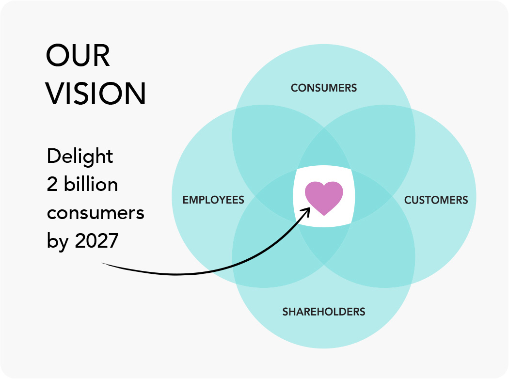 In December 2021, we articulated our strategy, which is to focus on category development driven by product innovation, relevance building, creating access and marketing investments; and to fund it through a digitally enabled radical simplification of our company. We will do this while continuing to live our values and place our people and the planet alongside profits. Our measure of medium-term success is the double-digit volume growth ambition we have set ourselves.