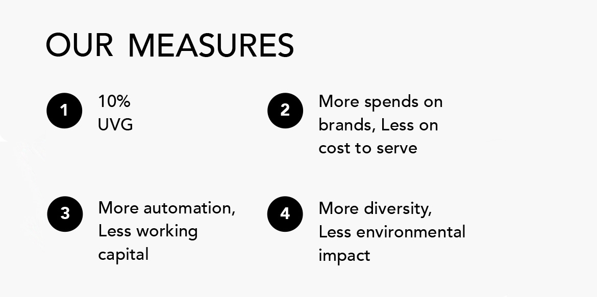 Our game plan is to fuel category development by simplifying our operations and cutting down on what we call ‘controllable costs’ (costs which consumers don’t see), and investing that in costs that consumers do see, like material costs and media, and some parts of distribution costs.
